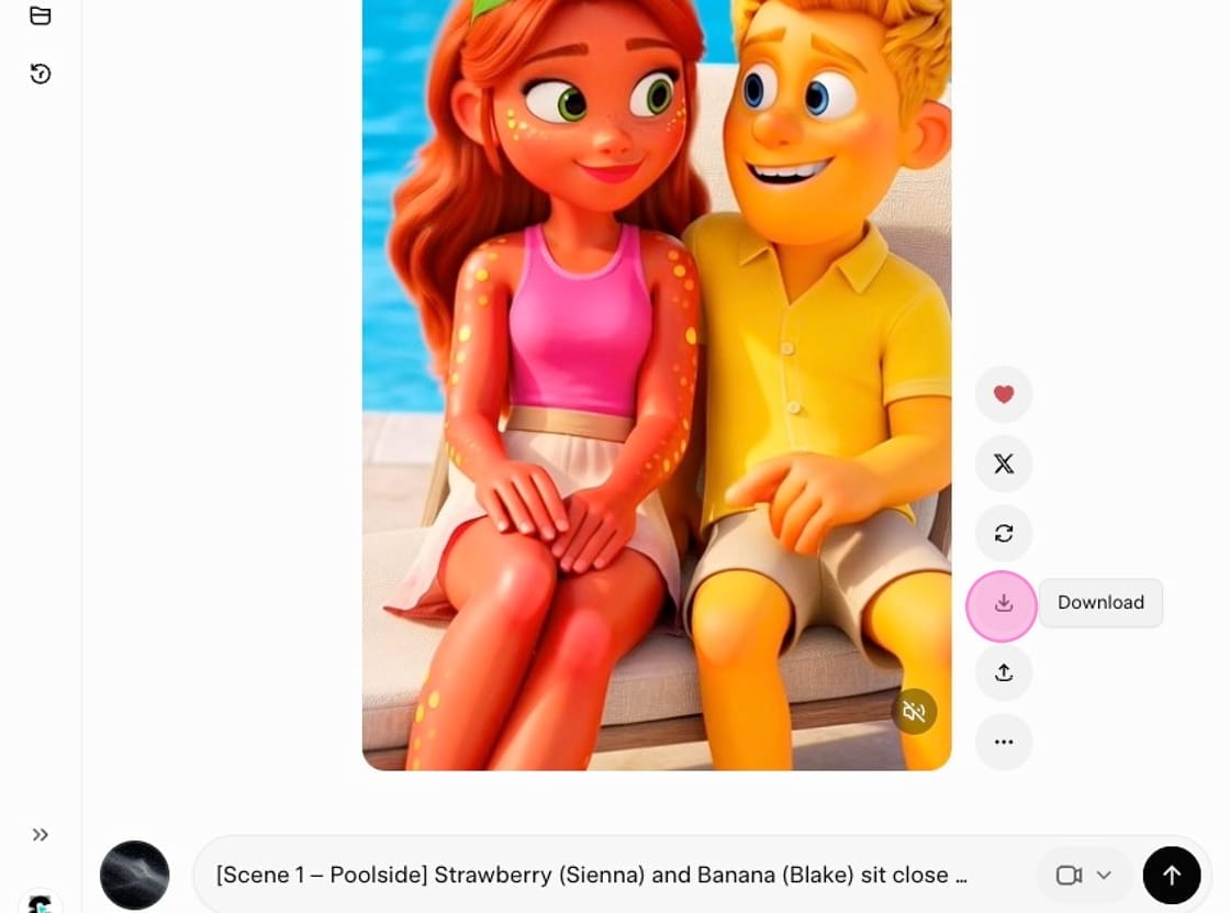 Paste into Grok Imagine and add this prompt to the end of it “Pixar 3D animation style, human characters with fruit-colored skin and fruit-themed features (not fruit-shaped heads), human faces and body proportions, cinematic lighting.” This provides a style guide for Grok when creating the video